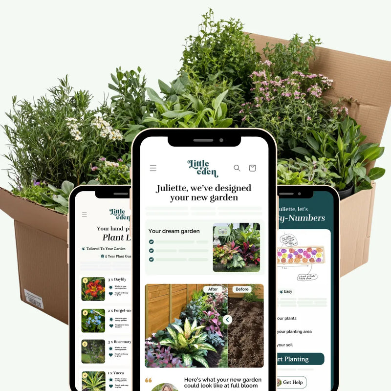 It’s your personalised garden plan, based on an inspiration image you choose or upload. We tailor it to your garden’s size, shape, conditions, and style. It includes a garden design, planting plan, plant list, care guide—and the option to get everything delivered.