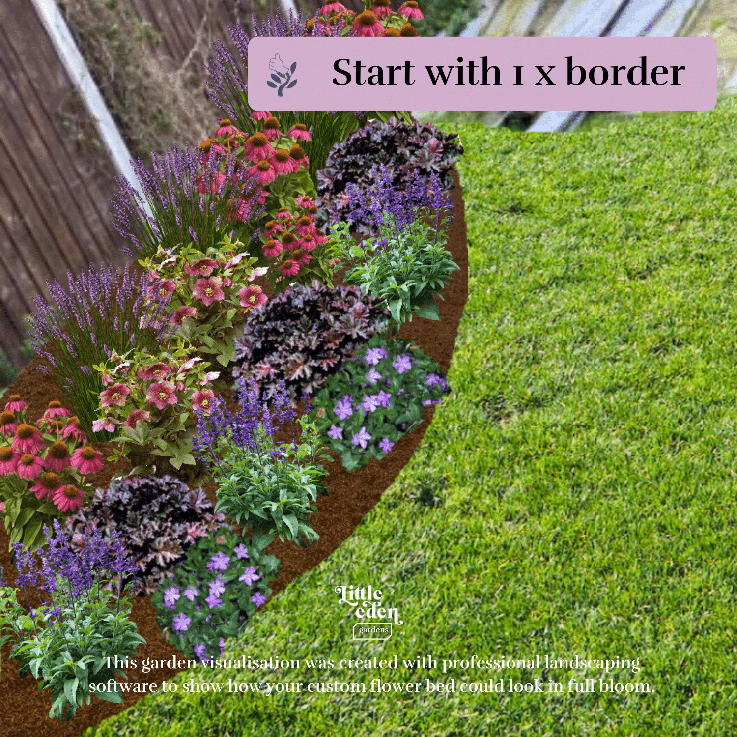 The low-cost way to effortlessly create your bespoke flower bed, expertly designed to guide you every step of the way. This kit is tailored to you and includes: