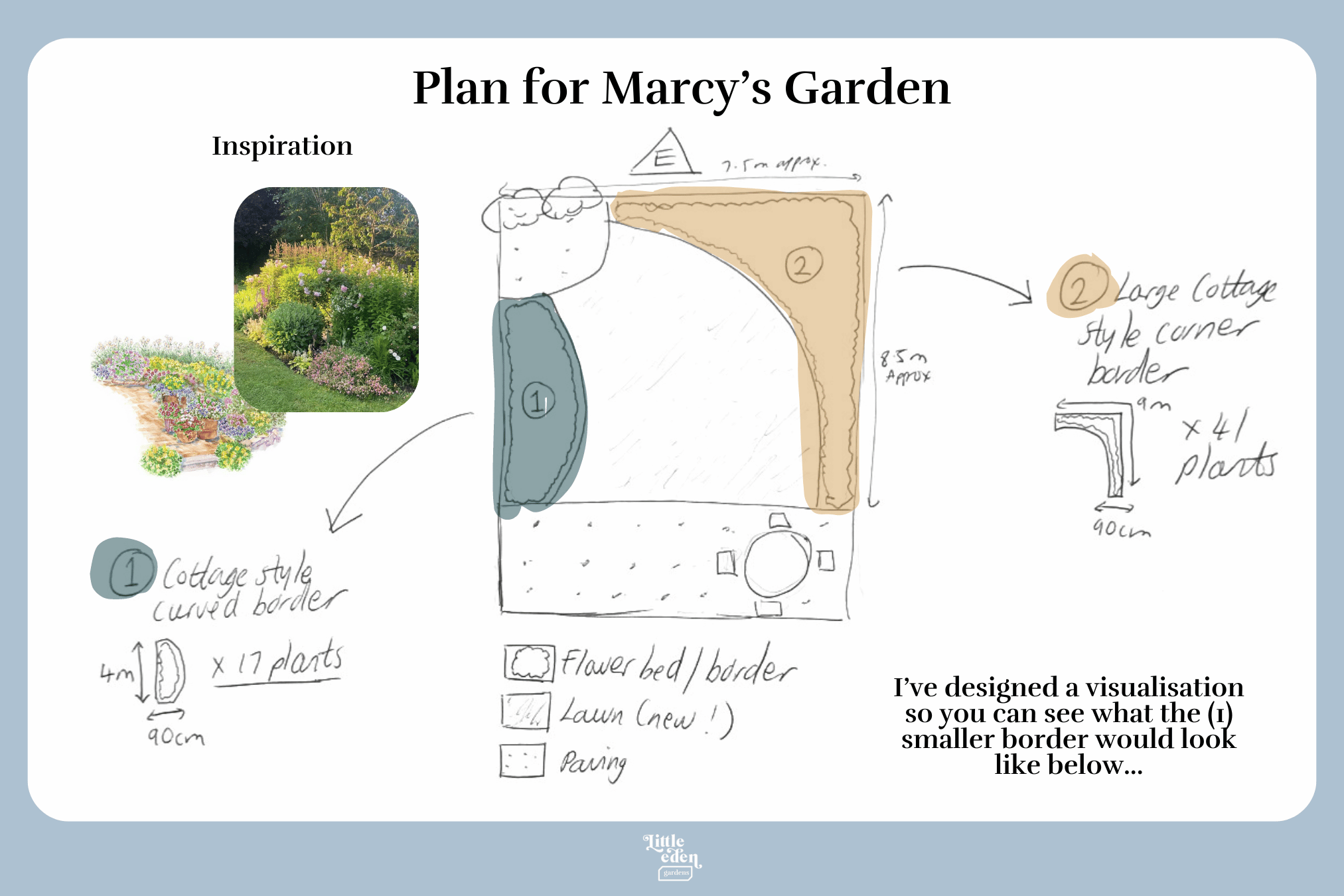 Marcy, I've planned a cottage style garden with curved, beautiful borders