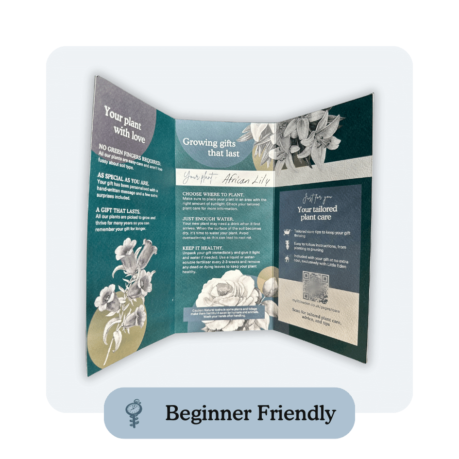 Tailored care tips to keep your gift thriving. Easy to follow care guide included via QR code.