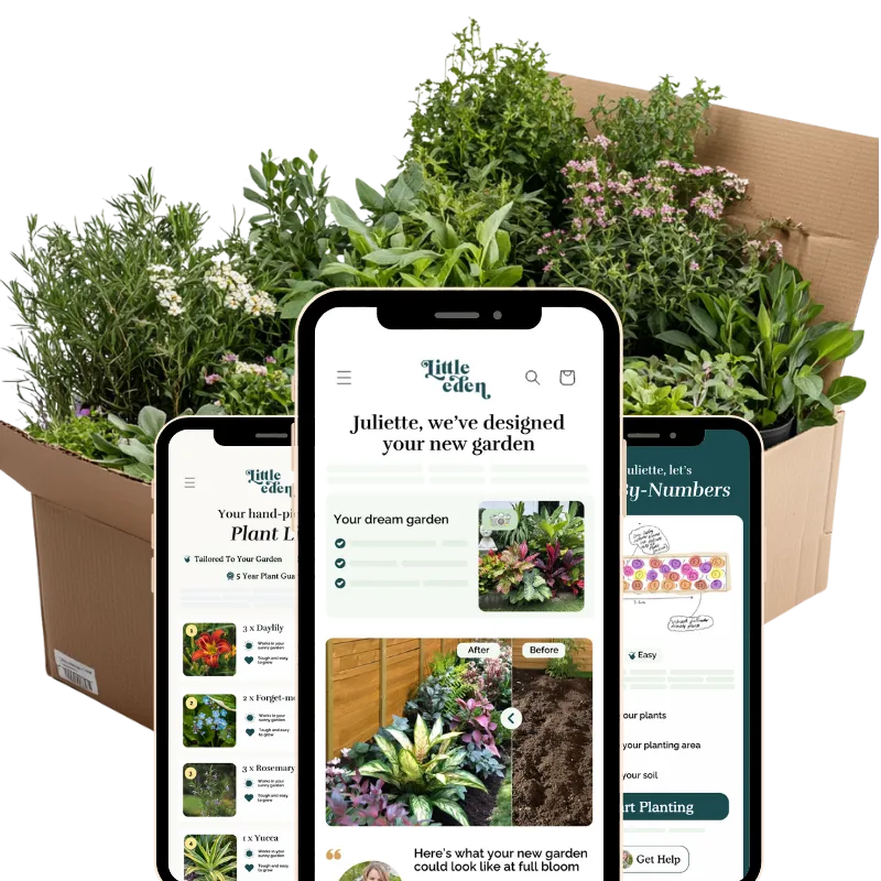 It’s your personalised garden plan, based on an inspiration image you choose or upload. We tailor it to your garden’s size, shape, conditions, and style. It includes a garden design, planting plan, plant list, care guide—and the option to get everything delivered.